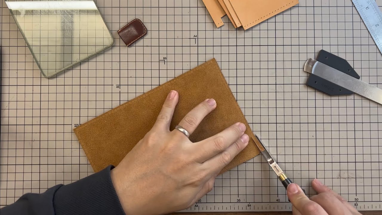 A simple recording of the process of making a passport holder with raised edges.