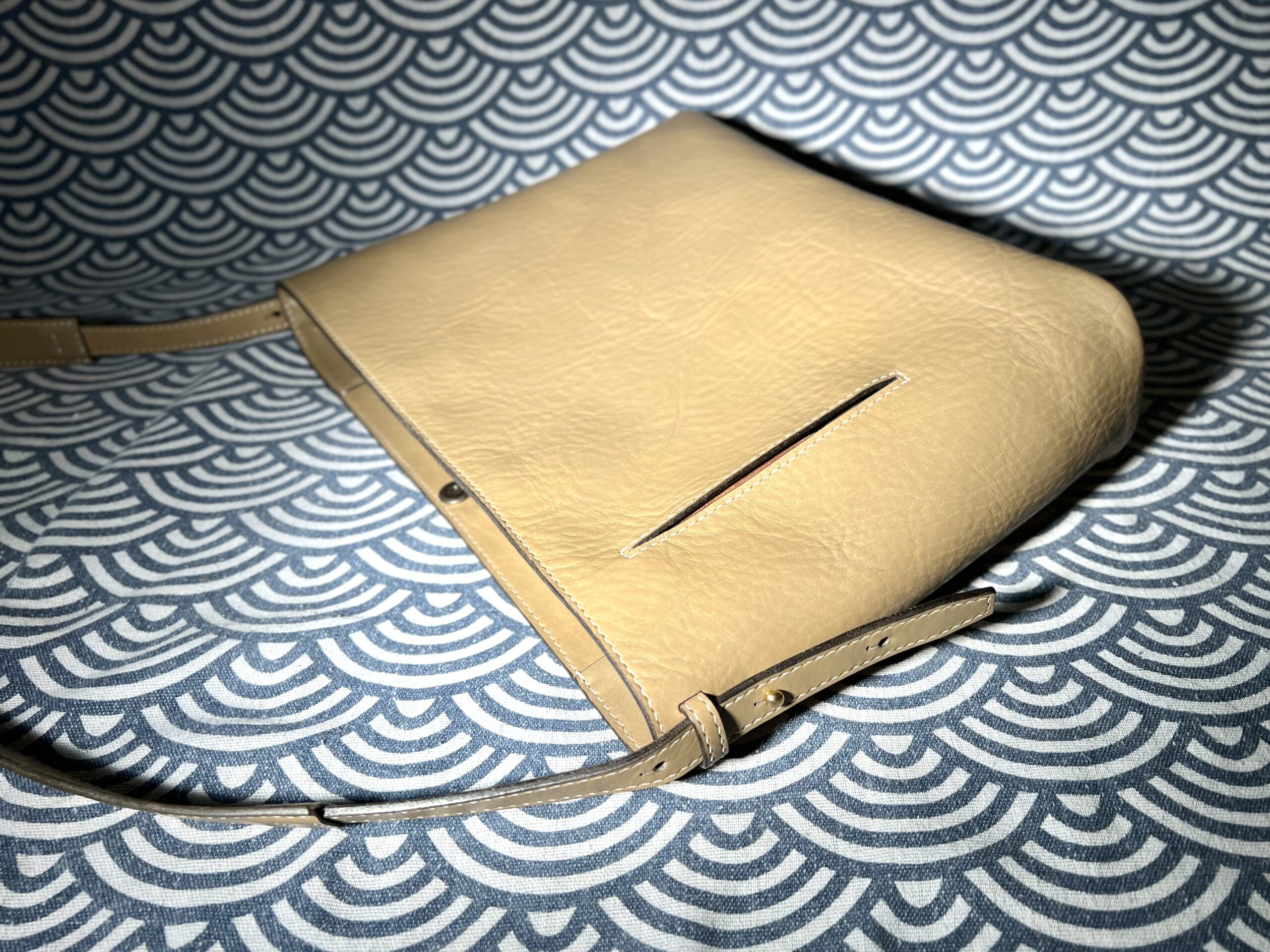 Crafted from soft vegetable-tanned leather with splash resistant finish, this bag combines durability with a supple, refined touch. The leather develops a rich patina over time, making each piece uniquely yours.