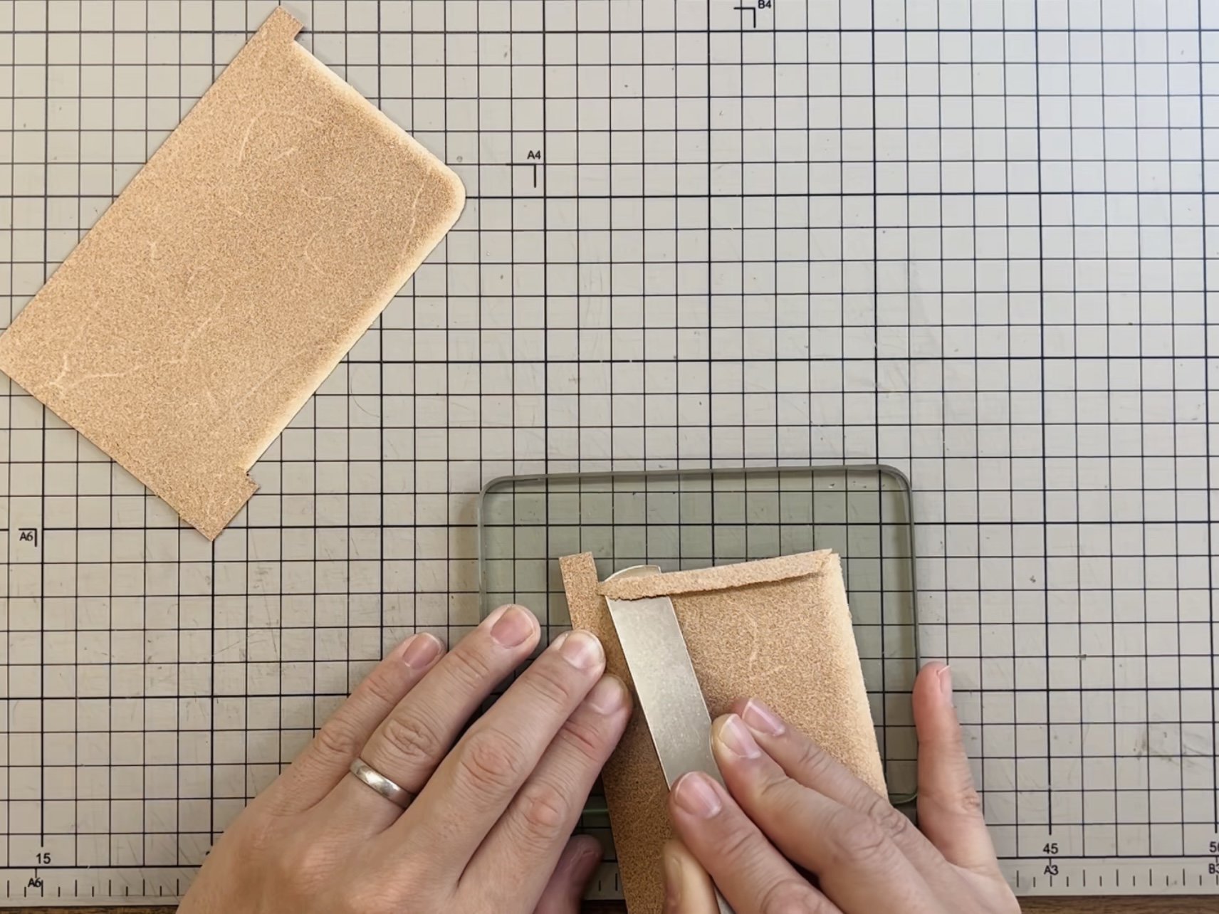 These two processes are not the same and are typically carried out using different types of machines. However, when it comes to smaller components—such as the inner layers of card slots in wallets—the presence of tight inner corners and recessed curves makes machine skiving impractical. In such cases, hand skiving becomes necessary, offering greater control and precision for a cleaner, more refined result.