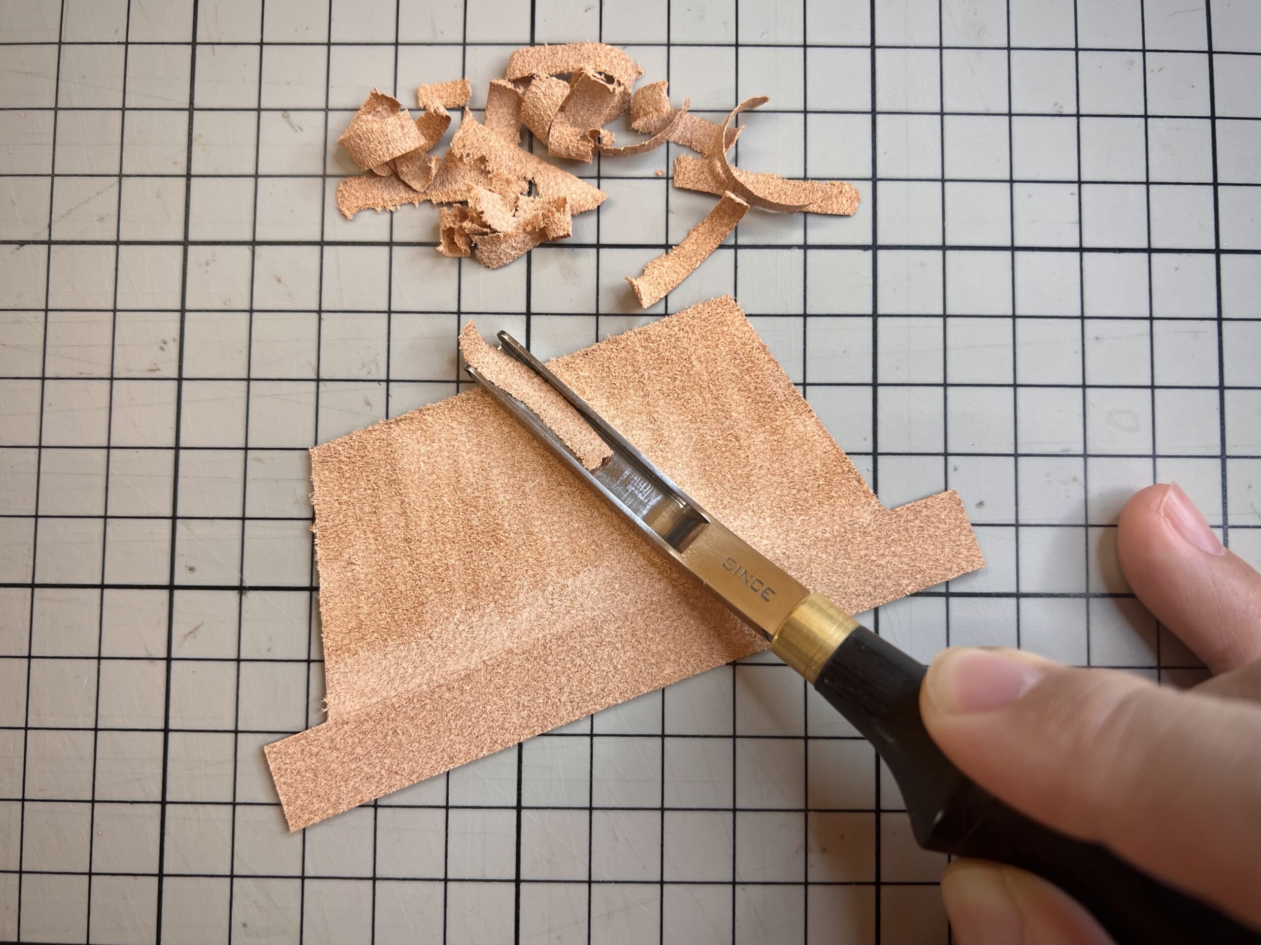 Don’t be misled by the name French Edge Skiver. In hand leathercraft, it is more commonly used for evenly thinning small areas rather than just edges. In contrast, the Skiving Knife is the tool that truly excels at freehand, precise tapering along edges, especially where a smooth, gradual transition is required.
